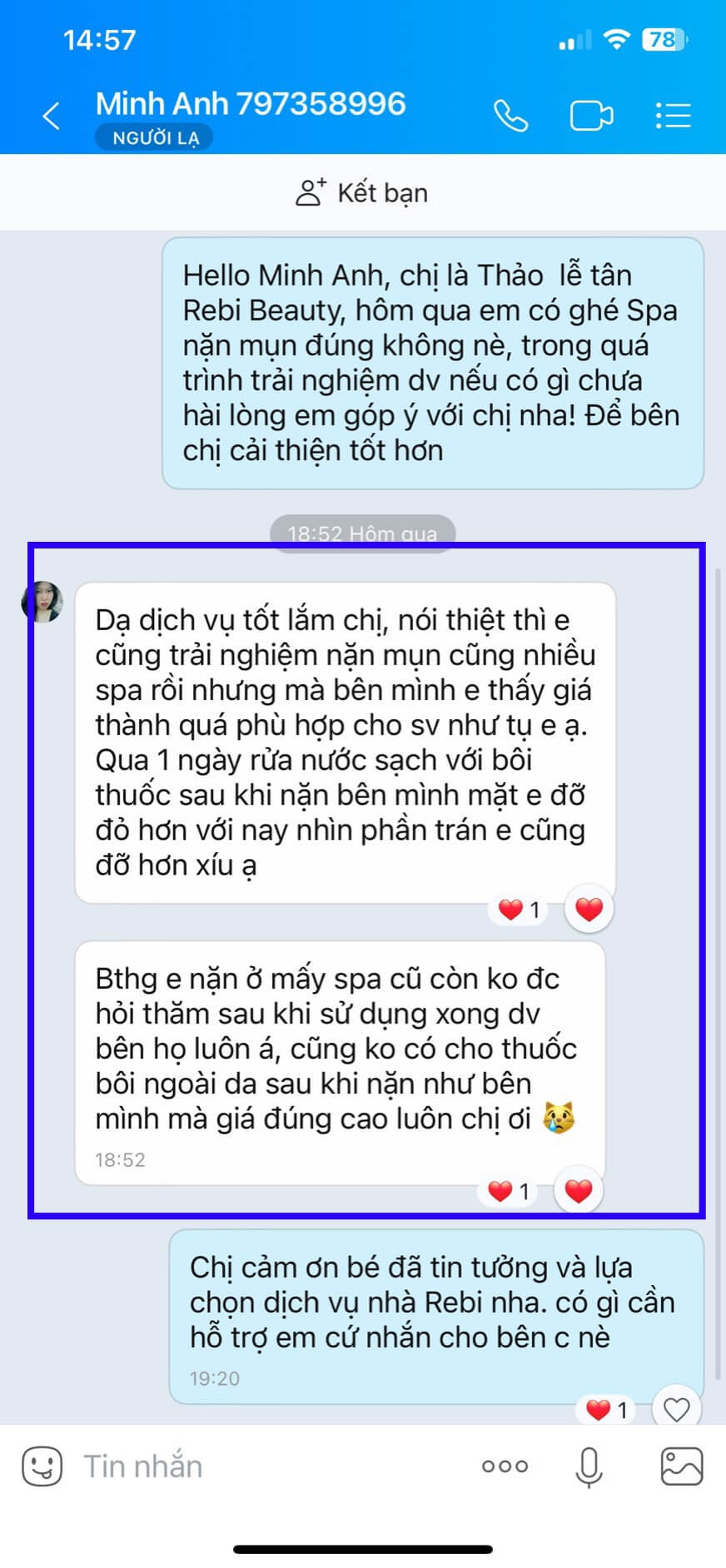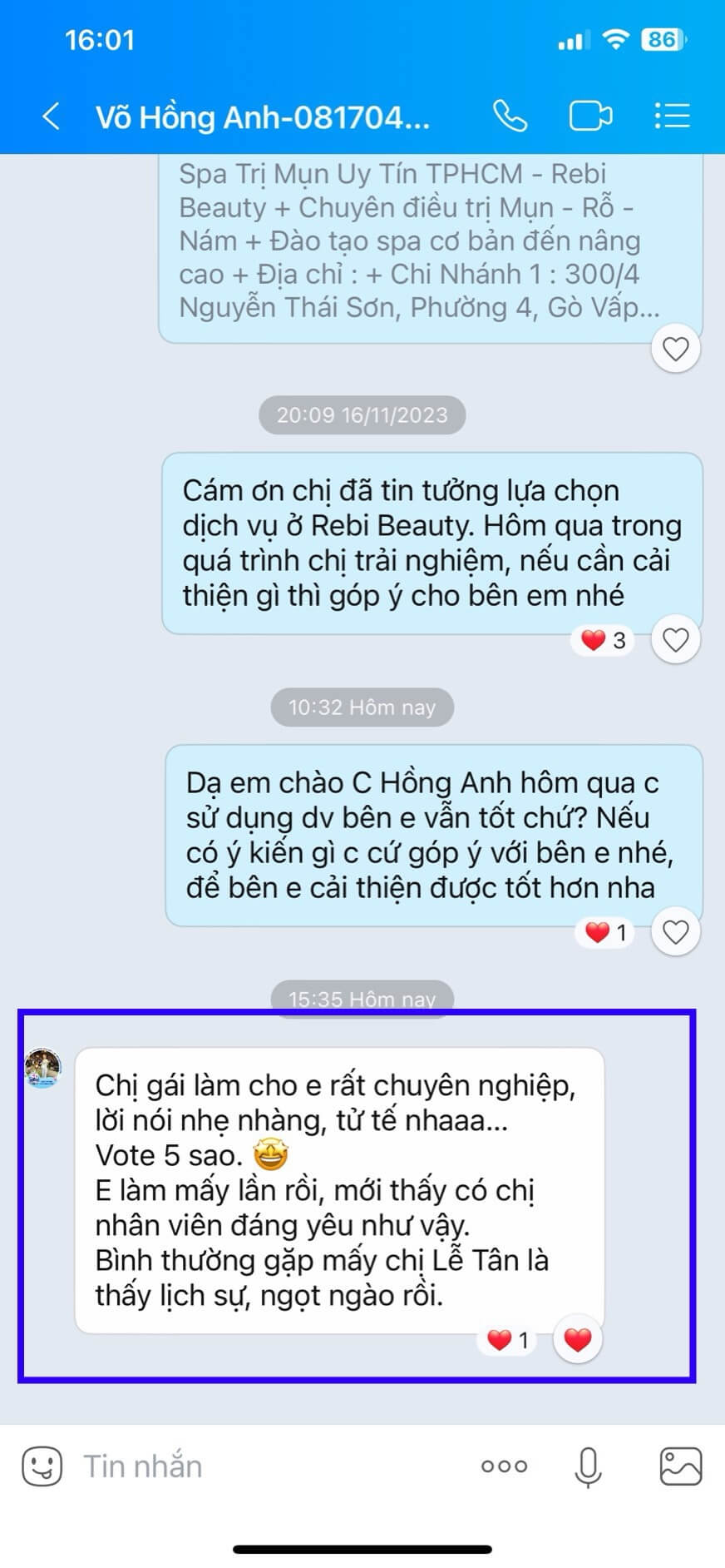 (*) Với mỗi khách hàng điều trị ở Rebi sẽ có các mốc thời gian khác nhau. Những case tốn nhiều thời gian phục hồi lúc đầu, do tiền sử điều trị sai, làm nền da mỏng yếu. Tuy nhiên ngược lại, có những case cấp tốc chỉ cần vài tuần lại cho kết quả vô cùng tuyệt vời.