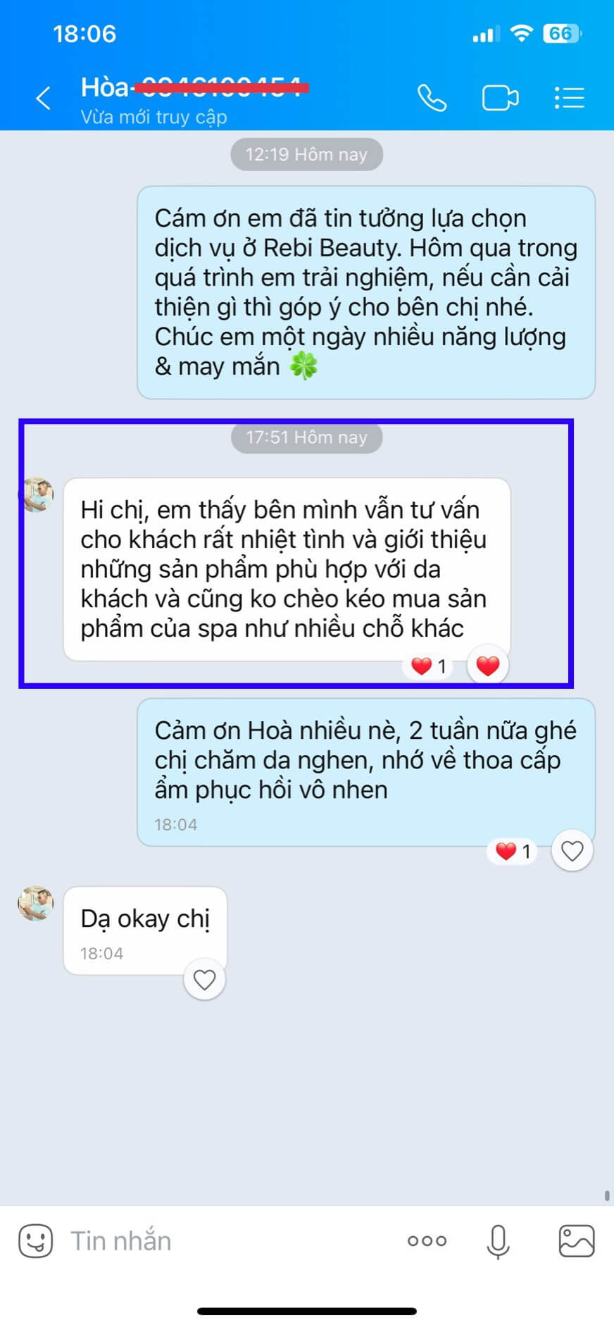 Ngoài dịch vụ tại spa, khách có mua sản phẩm để skincare tại nhà, sẽ được thiết kế Routine phù hợp & takecare 24/7 giúp làn da đáp ứng tốt nhất.
