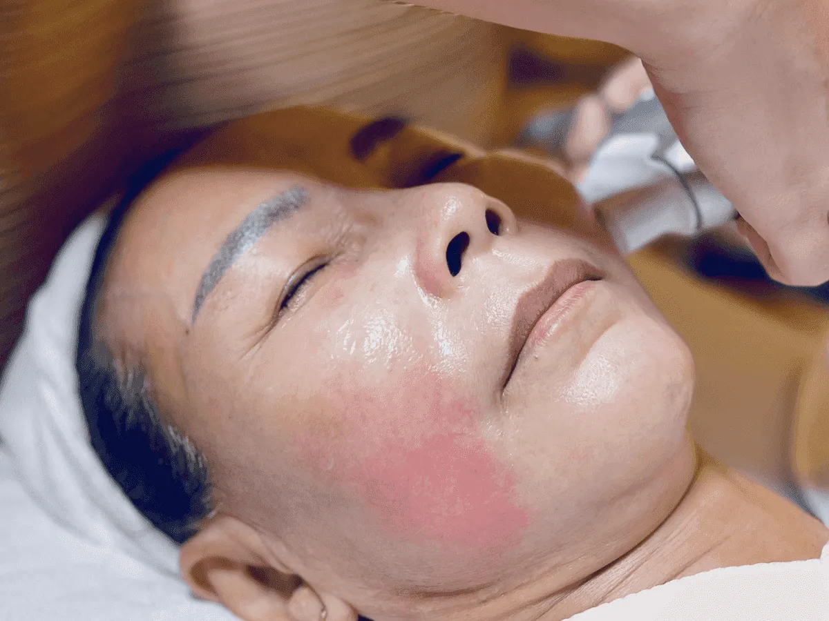 - Bước 9: Lau mặt sạch + điện di lanh với dưỡng chất phục hồi